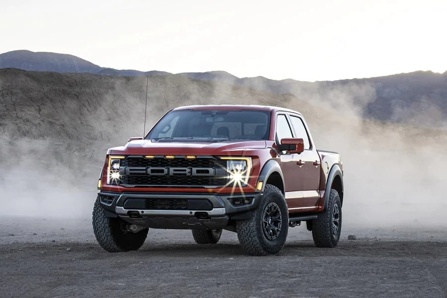When the road diverges, a true off-roader goes right down the middle. The 2022 F-150® Raptor® is equipped to take on punishing terrain that would be off-limits to a conventional four-wheel-drive pickup.* FOX™ shocks with Live Valve technology are the largest-ever shocks on Raptor®. The internal bypass technology features an electronic solenoid valve that provides active damping. Plus, the Raptor® is available with massive 37-inch BFGoodrich® All Terrain T/A® KO2 tires.