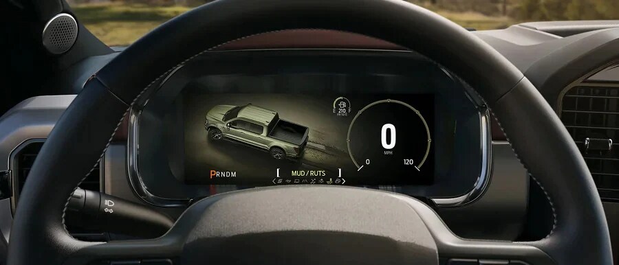 Everything looks better on the big screen. You get a front-row view to available navigation guidance, Intelligent Adaptive Cruise Control, off-road vehicle orientation and towing information. And now, Selectable Drive Modes have their own avatars and themes that display in your cluster. Each of the available modes (Normal, Eco, Sport, Tow/Haul, Slippery, Trail, Deep Snow/Sand,* Mud/Ruts* and even Rock Crawl with the FX4 Off-Road Package) creates an interior environment that matches your action. Standard on the LARIAT, King Ranch,® Platinum and Limited.