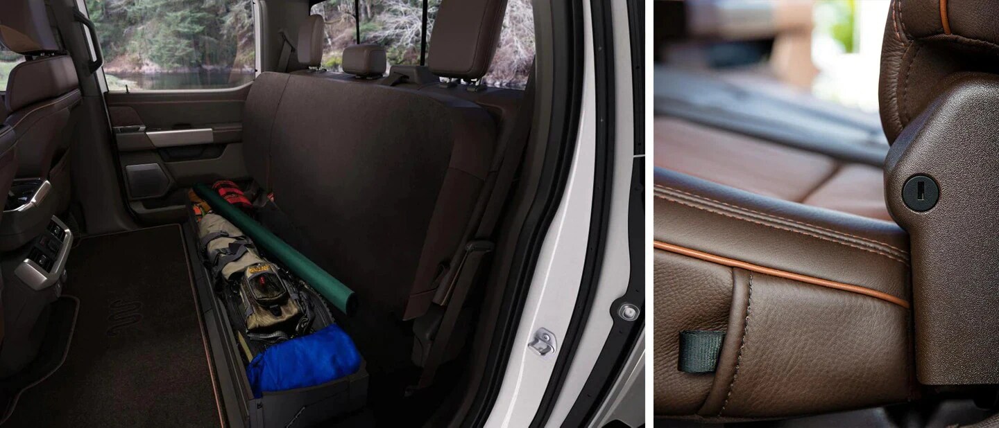 When you need things under lock and key, the available folding, lockable under-seat storage is the spot. It's integrated with the floor and perfect for storing loose items or anything you want to keep concealed and secure. The rear flat load floor also makes it easy to load and haul large items in the cab.