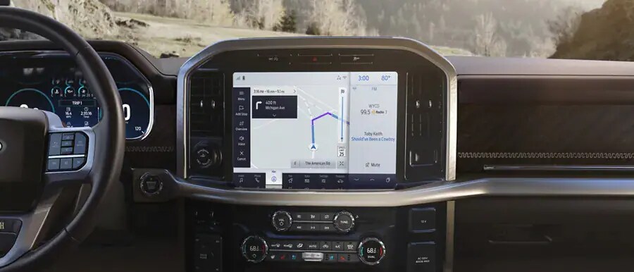 With available SYNC® 4 with enhanced voice recognition and the available 12-inch touchscreen, put everything you need at your command. Access your go-to playlist, find directions or make a call on the run. And to make multitasking even easier, the touchscreen has split-screen capability. Available on XLT and Tremor® and standard on LARIAT and above.
